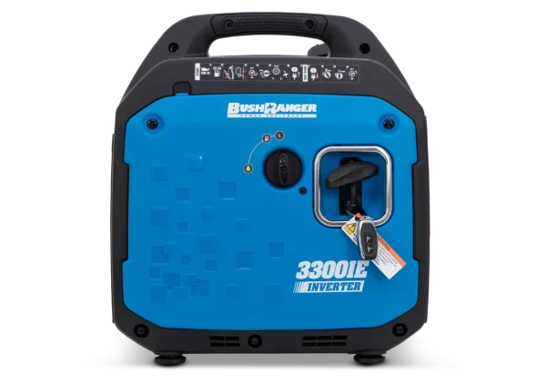 - Electric + Remote Start – Start the Bushranger 3300IE Inverter Generator from up to 25 metres away with the included key fob. No more pulling cords in the rain!