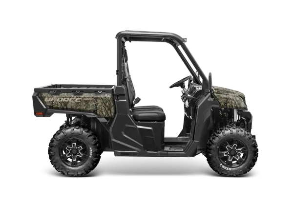 The CFMoto UForce U1000 Hunt Utility Vehicle is the ultimate hunt-ready UTV, blending rugged performance with stealthy style. Powered by a 963cc V-twin engine delivering 71 hp, it features a UV-resistant camouflage wrap, 3,500-lb winch, front protector bar, half doors, and A-arm guards for unbeatable protection on the trail.