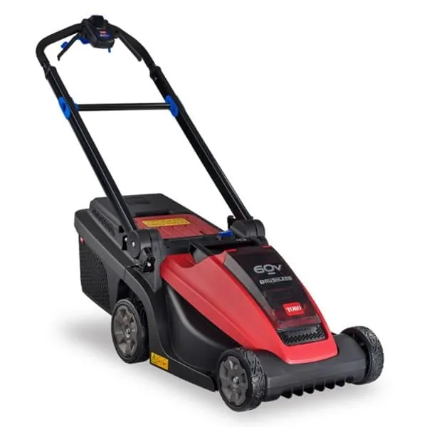Flexibility is at the core of the Toro 43 cm Recycler Self-Propelled 60V MAX* Battery Mower. Adjust the speed to your liking, set it for bagging or recycling, and more. The wide 43 cm cutting width makes quick work of lawns up to 300 square metres. The Flex Force Power System™ includes an 850W brushless 60V motor, free of engine exhaust emissions. And the RunSmart™ Software maximises run time and performance by automatically adjusting the speed of the motor to match the conditions. The SmartStow® feature lets the mower be stored upright, saving storage space and providing quick access for cleaning under the deck. Easy push-button start.
